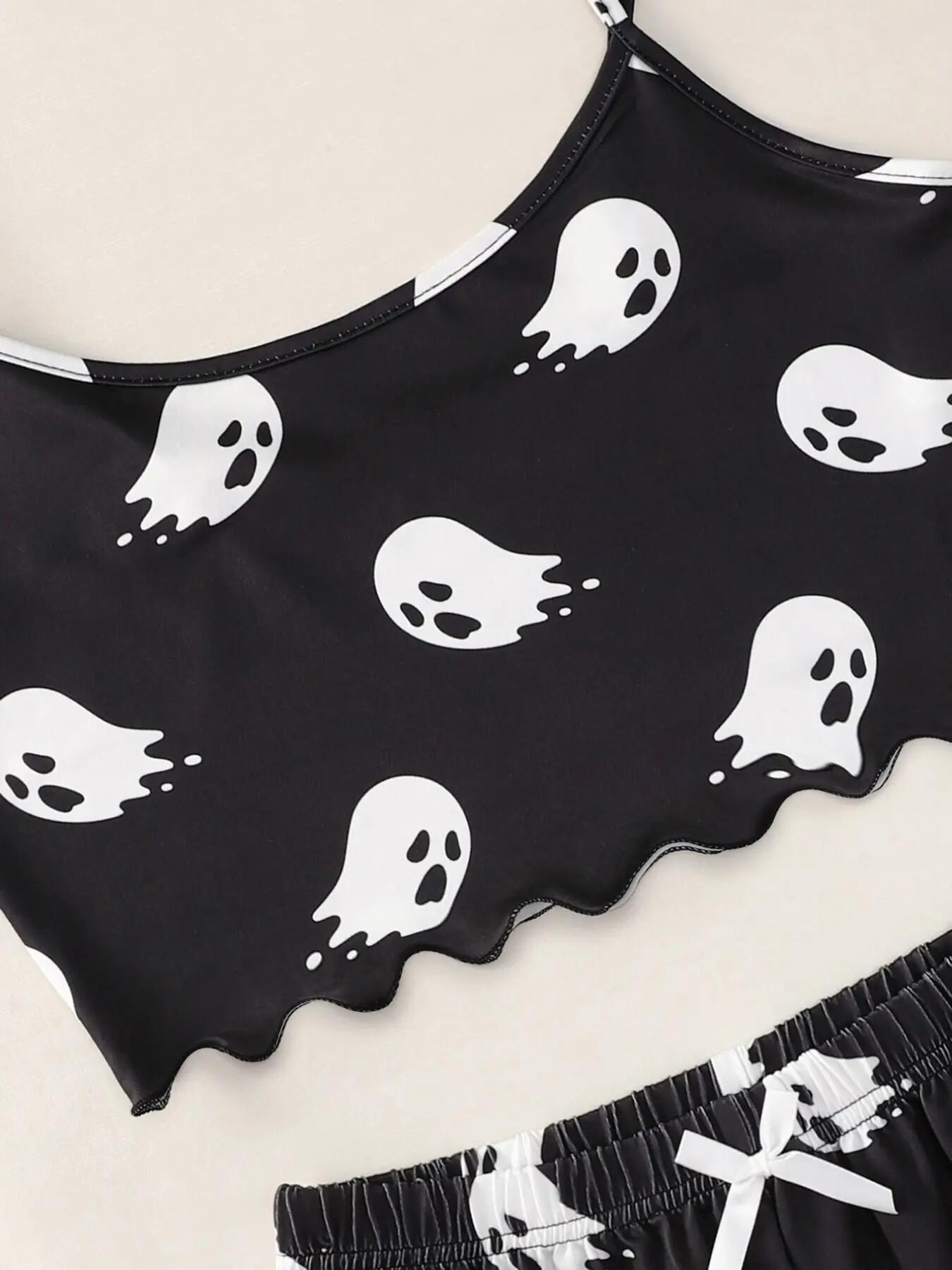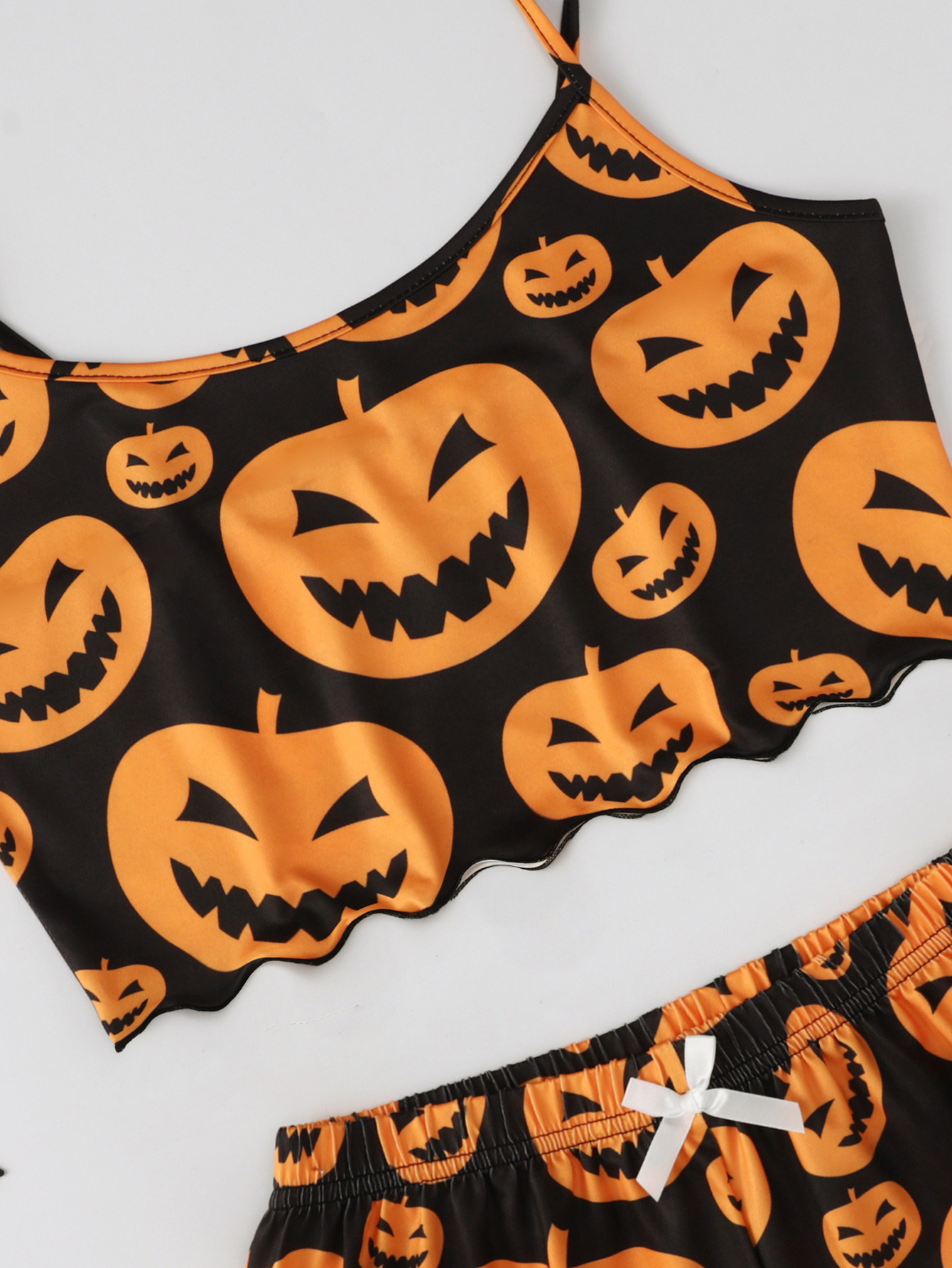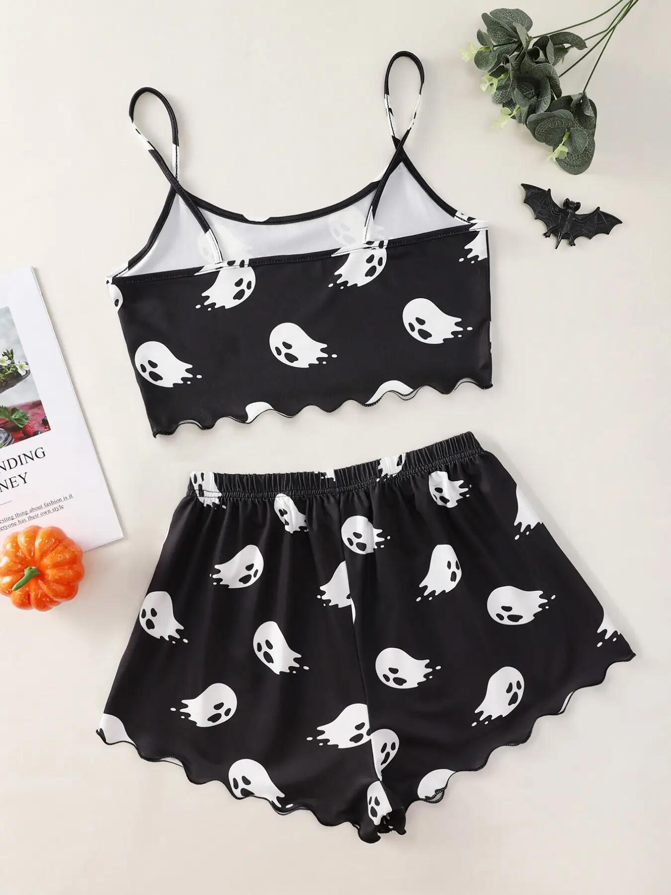Get cozy and festive this spooky season with our Halloween Pumpkin Print Sleeveless Camisole and Shorts Pajama Set! Inspired by trendy European and American styles, this cute and comfy women's sleepwear set is perfect for lounging at home, Halloween sleepovers, or spooky movie nights.