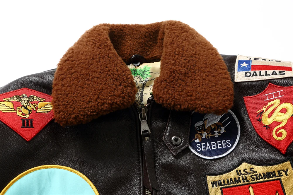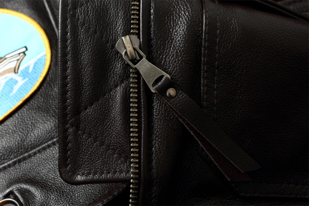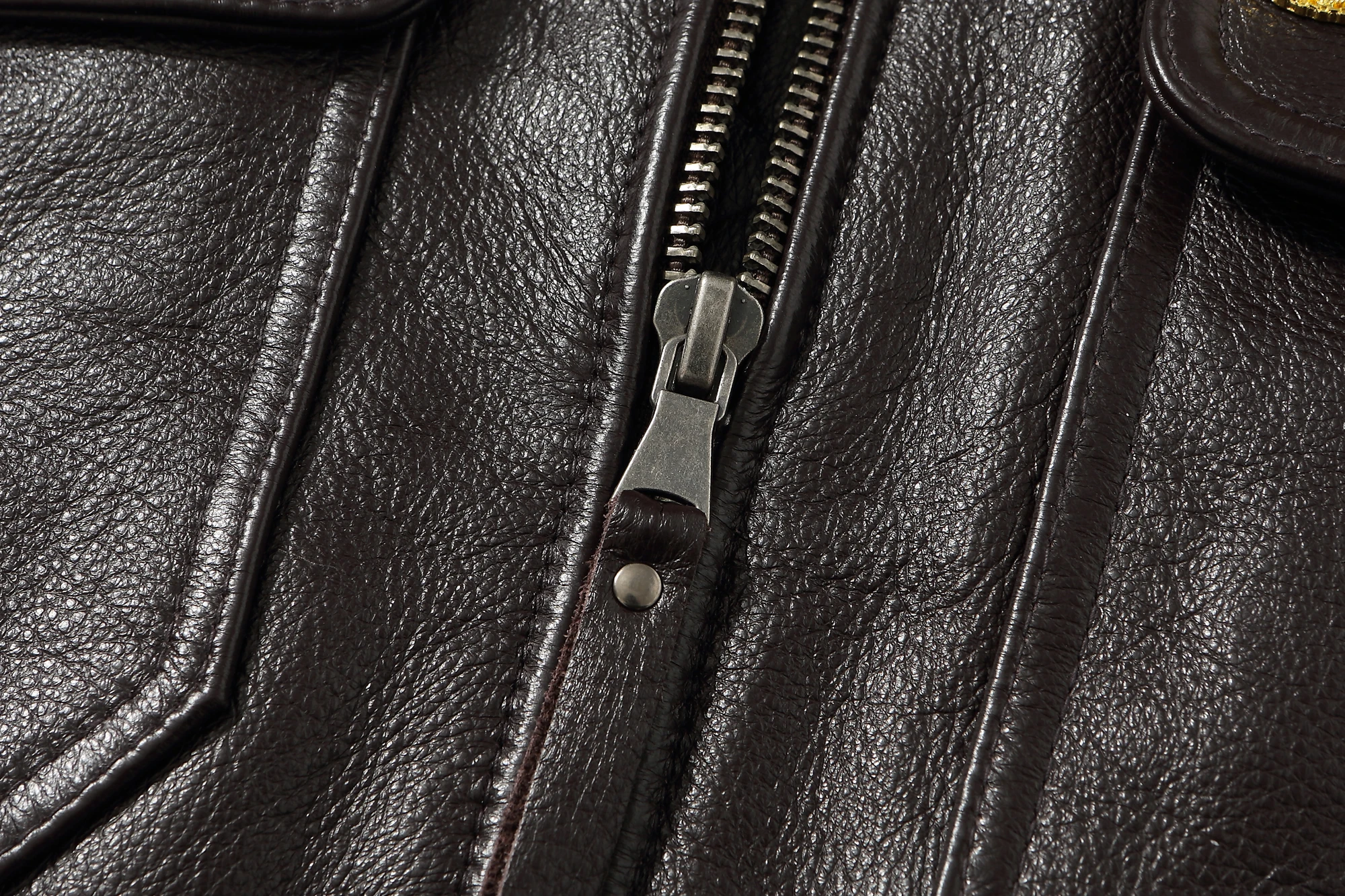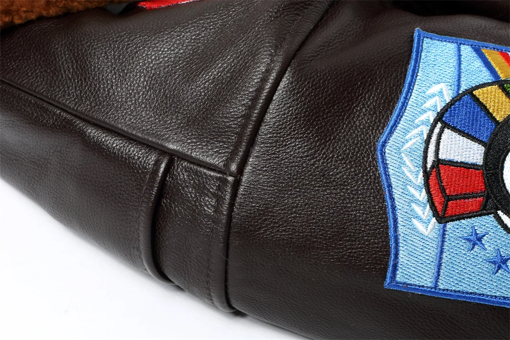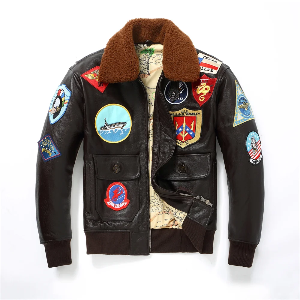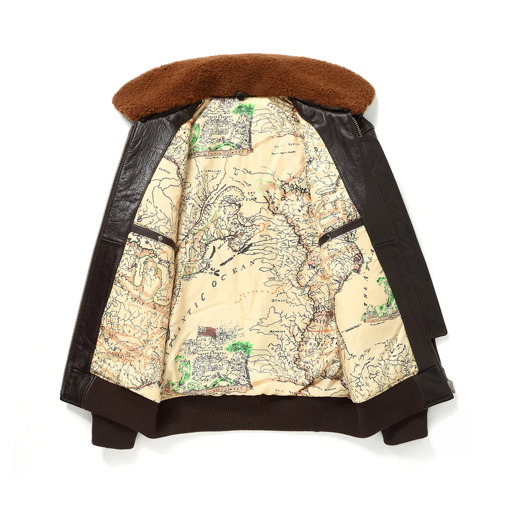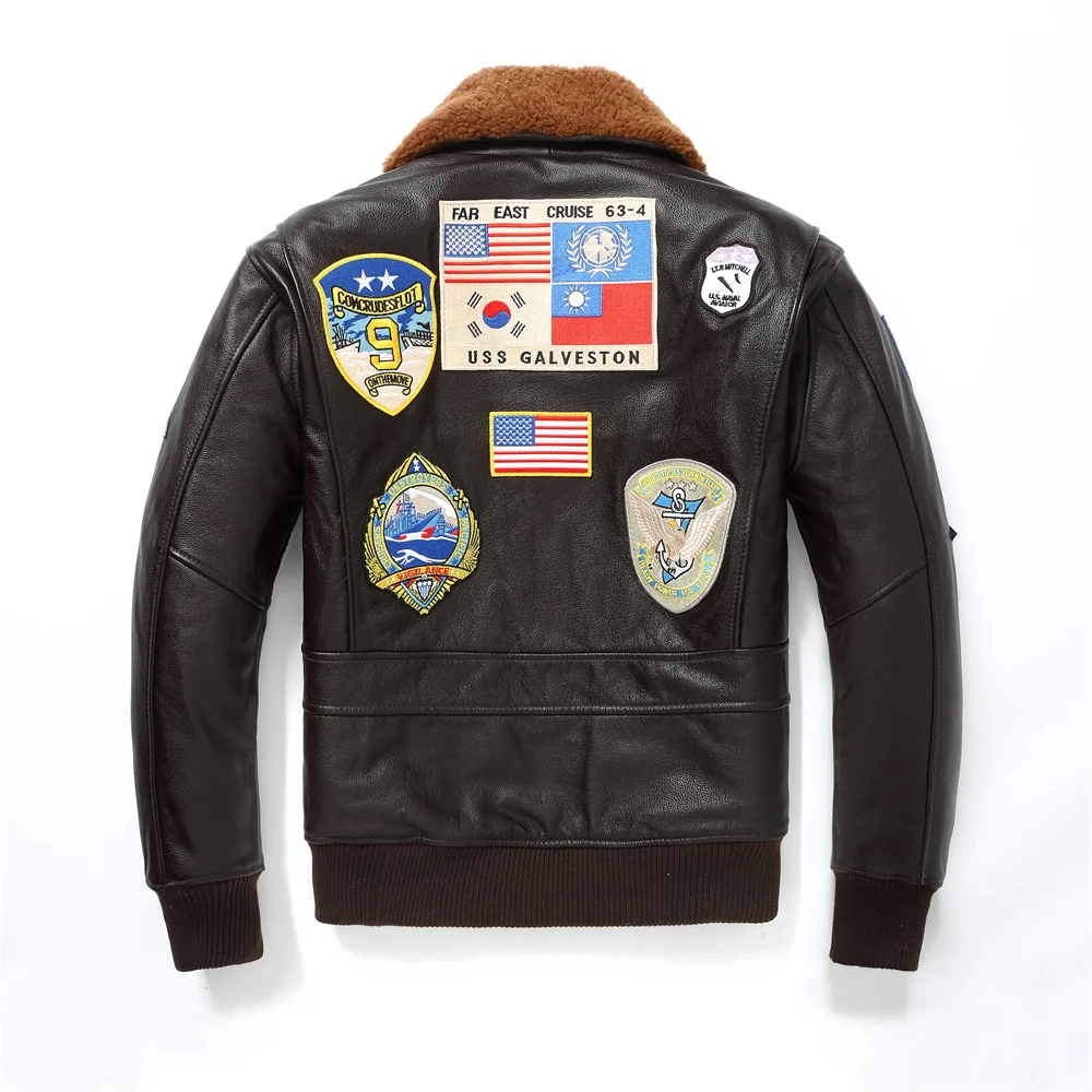 Dark Brown Winter Pilot Leather Jacket Men Military Style Europe Size Genuine Natural Thick Cowhide G1 Flight Leather Coat