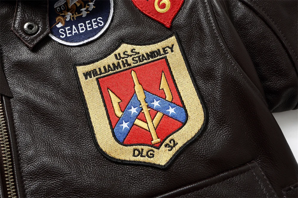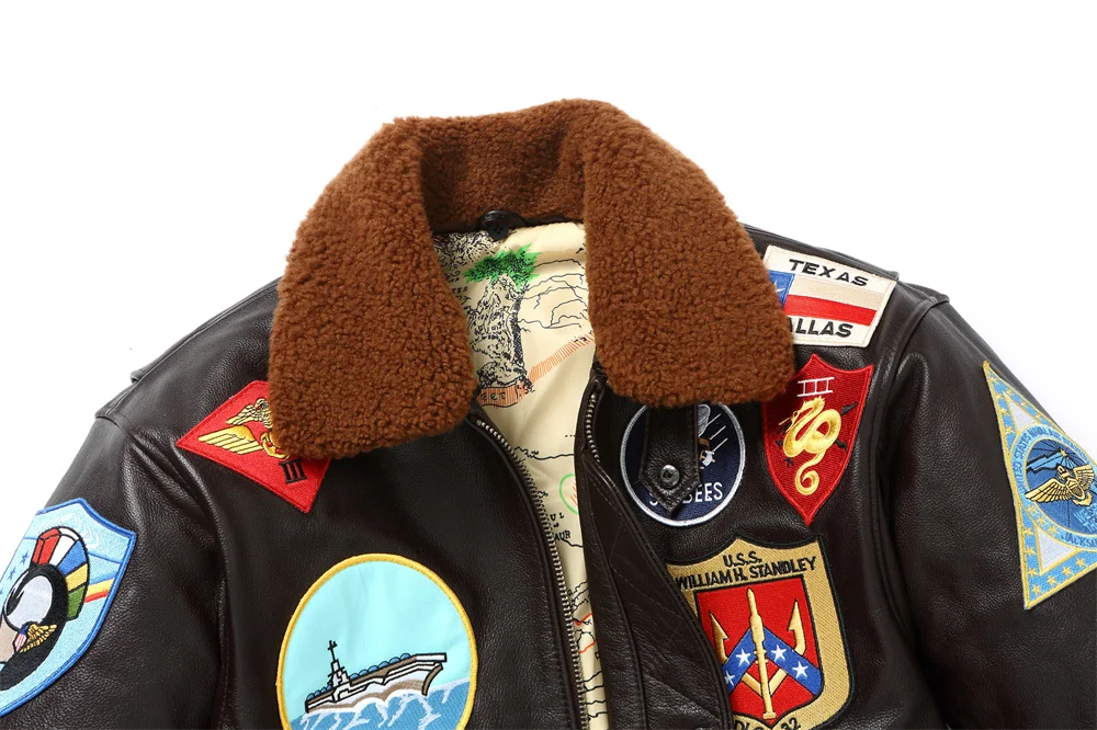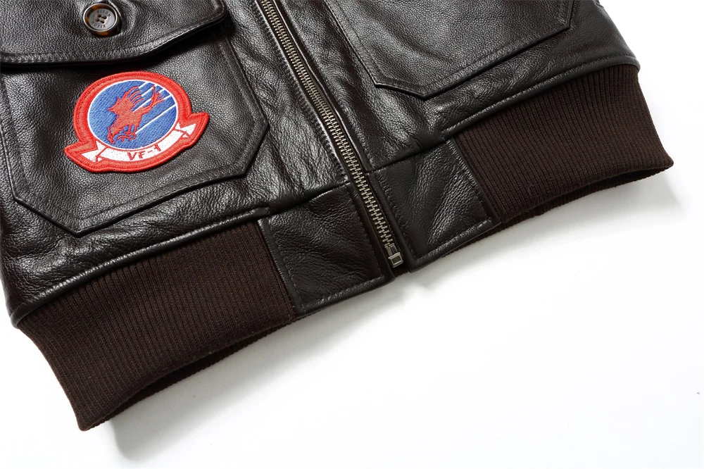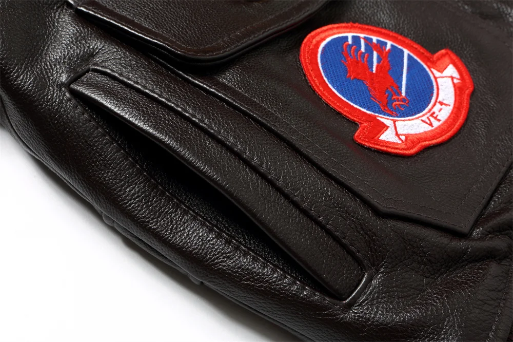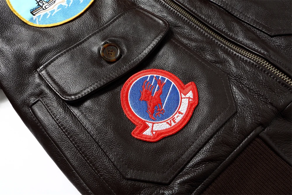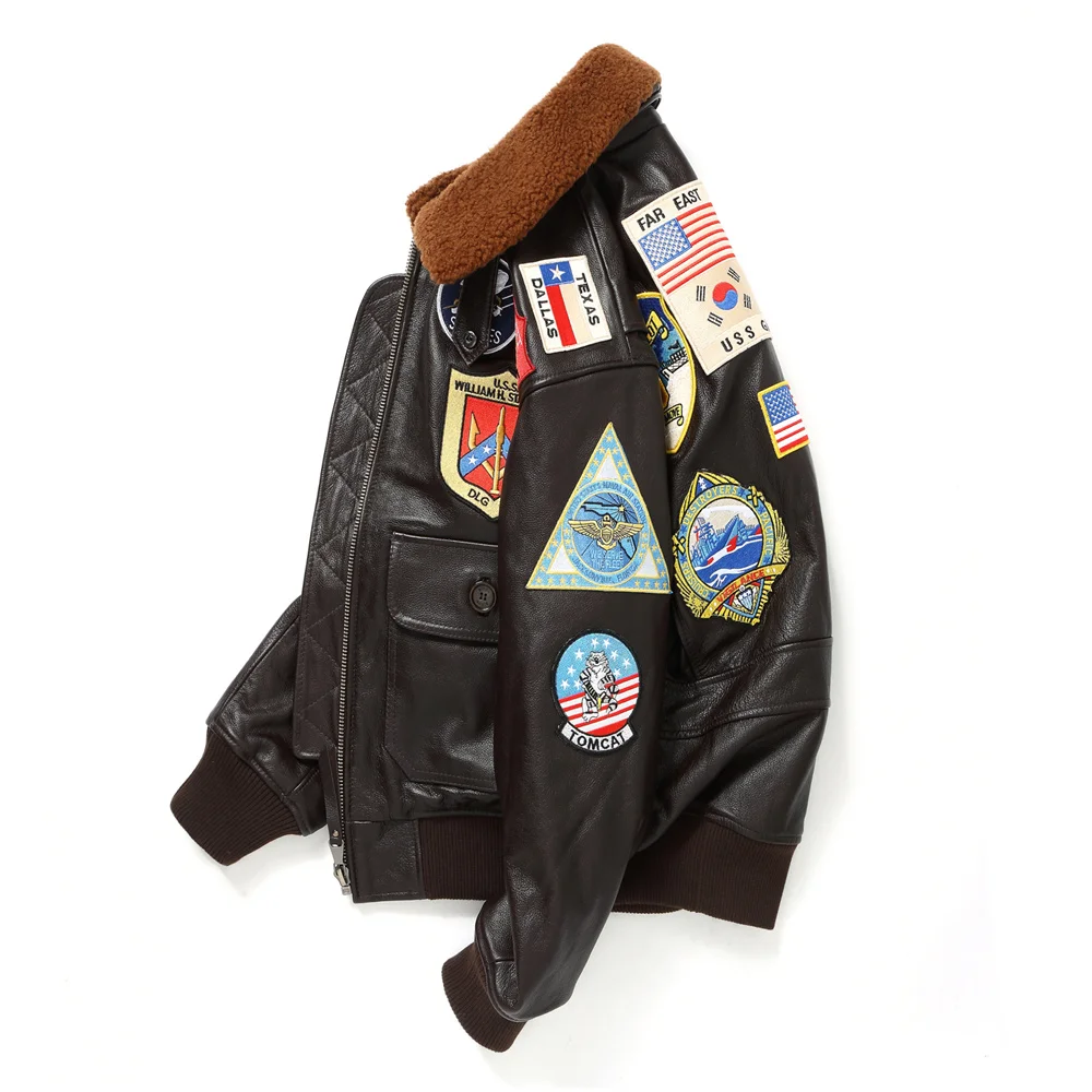 Tom Cruise Top Gun Patched G-1 Flight Bomber Brown Leather Jacket