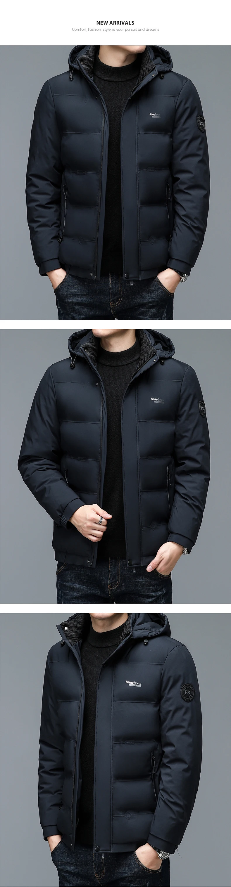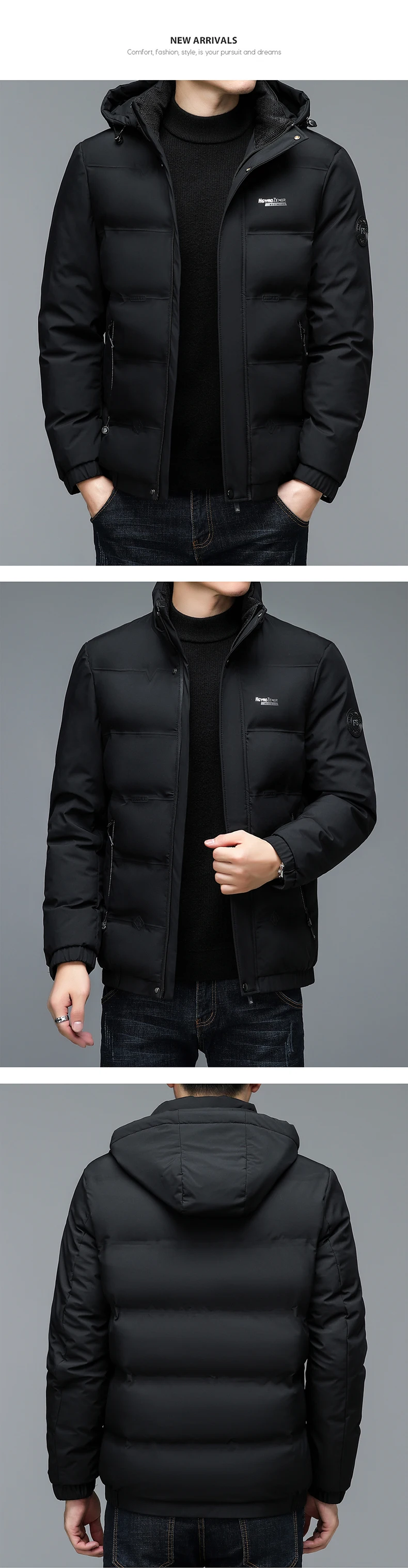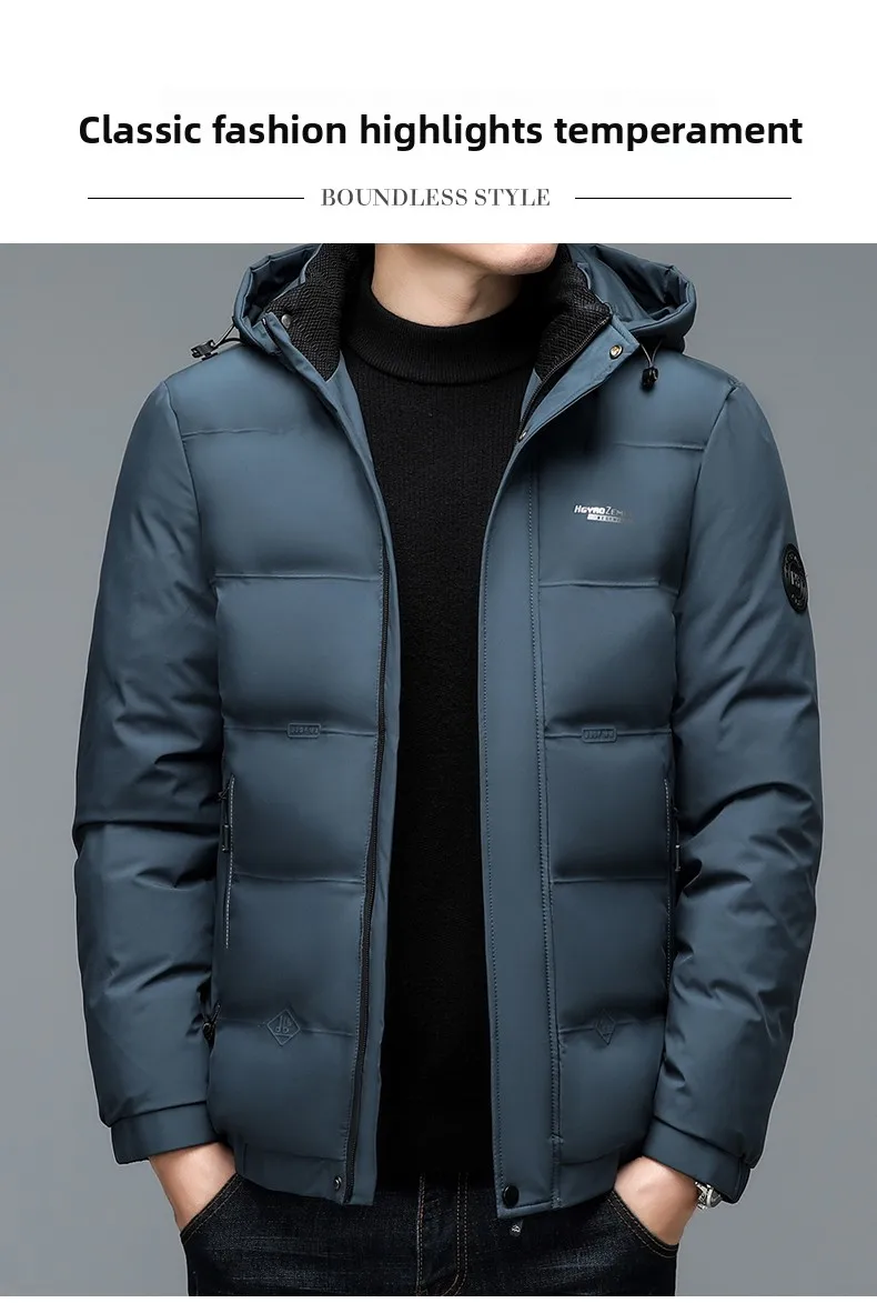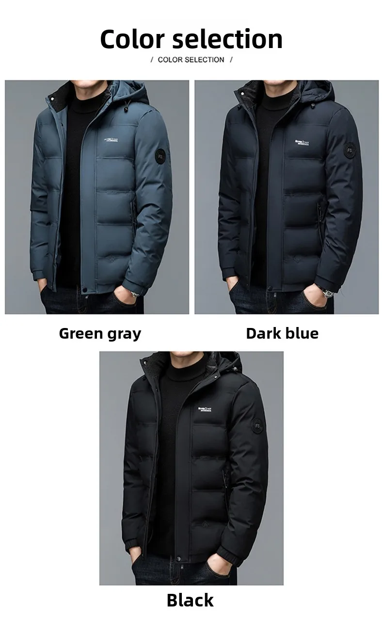 Men's Quilted Winter Windbreaker Parka Jacket with Thickened Lining – Hooded Standing Collar Coat for Middle-Aged Warmth