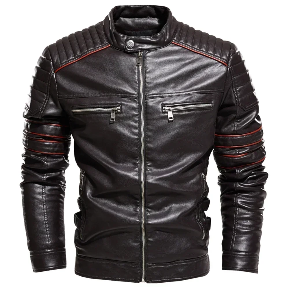 Streetwear Biker Coat Slim Fit Autumn Winter Coat Men Fur Lined Men Motorcycle Jacket Fashion Men Jacket Coffee Leather Jacket